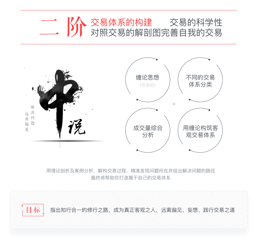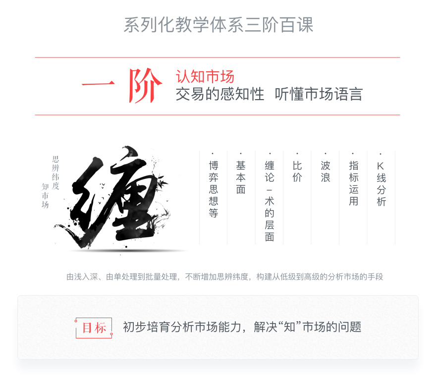 以缠论思想为指导,由浅入深,多理论综合运用,为你构造属于自己的交易体系,成为市场的真正赢家。(本套餐包含:第一、二、三阶段课程视频及辅导班的系列化教学体系!)