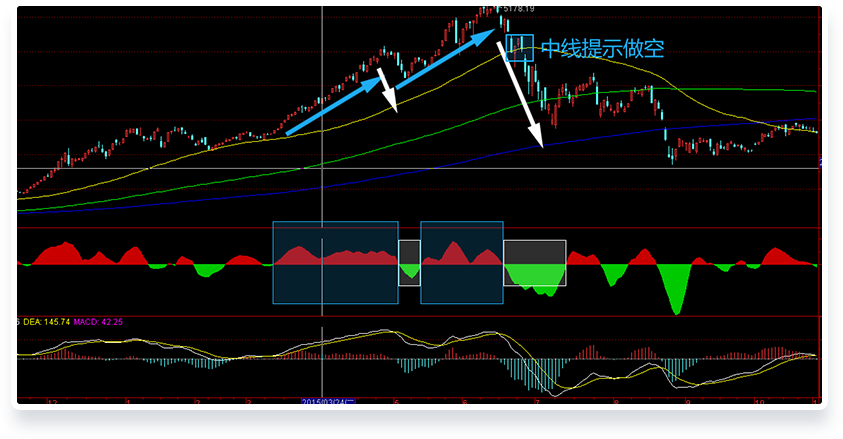 如右图,明显是多头小于空头的空间和力度,空头力量跌破生死线,中线提示做空