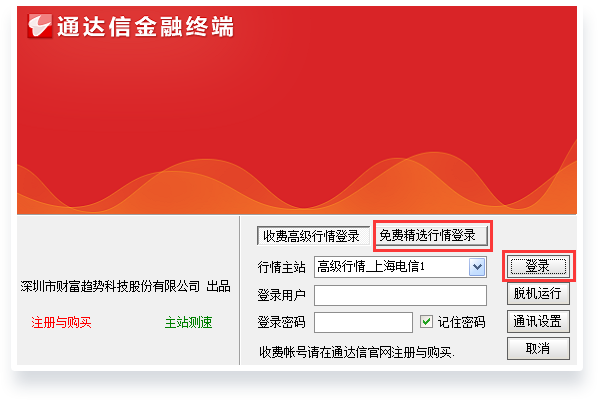 点击 “免费精选行情登陆” 进行软件登陆